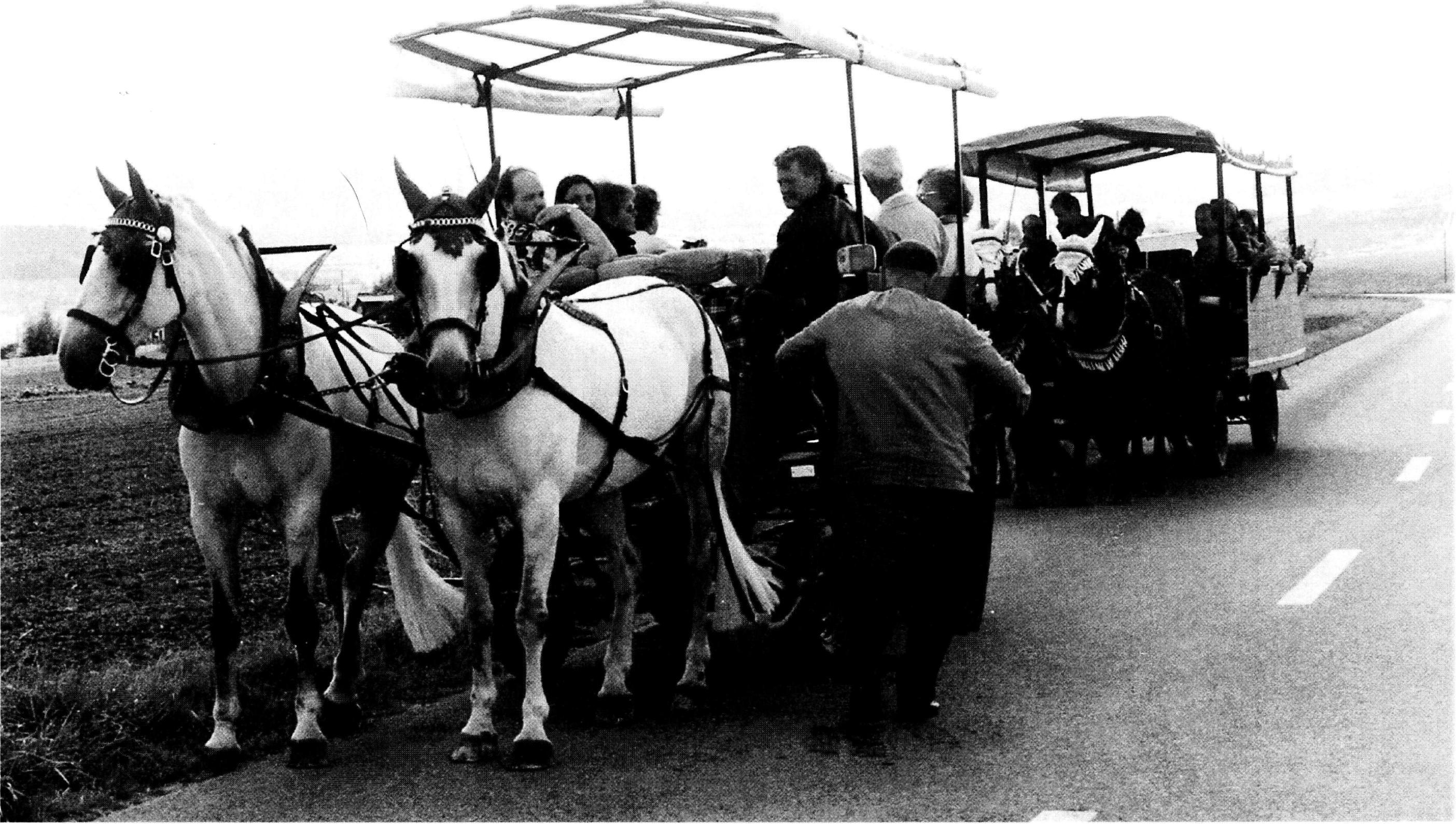 An der GV 1979 hatten die Mitglieder zum ersten Mal über einen solchen Anlass zu befinden. Auf Antrag von Hanspeter Schmid vom Restaurant Löwen wurde ein eintägiger Ausflug zum Karpfenweiher von Herrn Walter Disler in Hagenthal im Elsass beschlossen. Ende Juni 1980 war es dann so weit. Schöner hätte dieser Tag gar nicht sein können! Es wurden so viele Karpfen gefangen, dass man diese kurz entschlossen in zwei grosse Kübel umschüttete, um sie lebend mit nach Hause zu nehmen. Aber was würde wohl beim Zoll geschehen? - Gar nichts! Wir waren ja nur gut gelaunte Fischer, die nach Hause fuhren. Natürlich musste dieses Erlebnis auch gebührend gefeiert werden. Warum aber im Dorf noch lange darüber gesprochen wurde ... ja, das weiss der Chronist nicht mehr so genau!